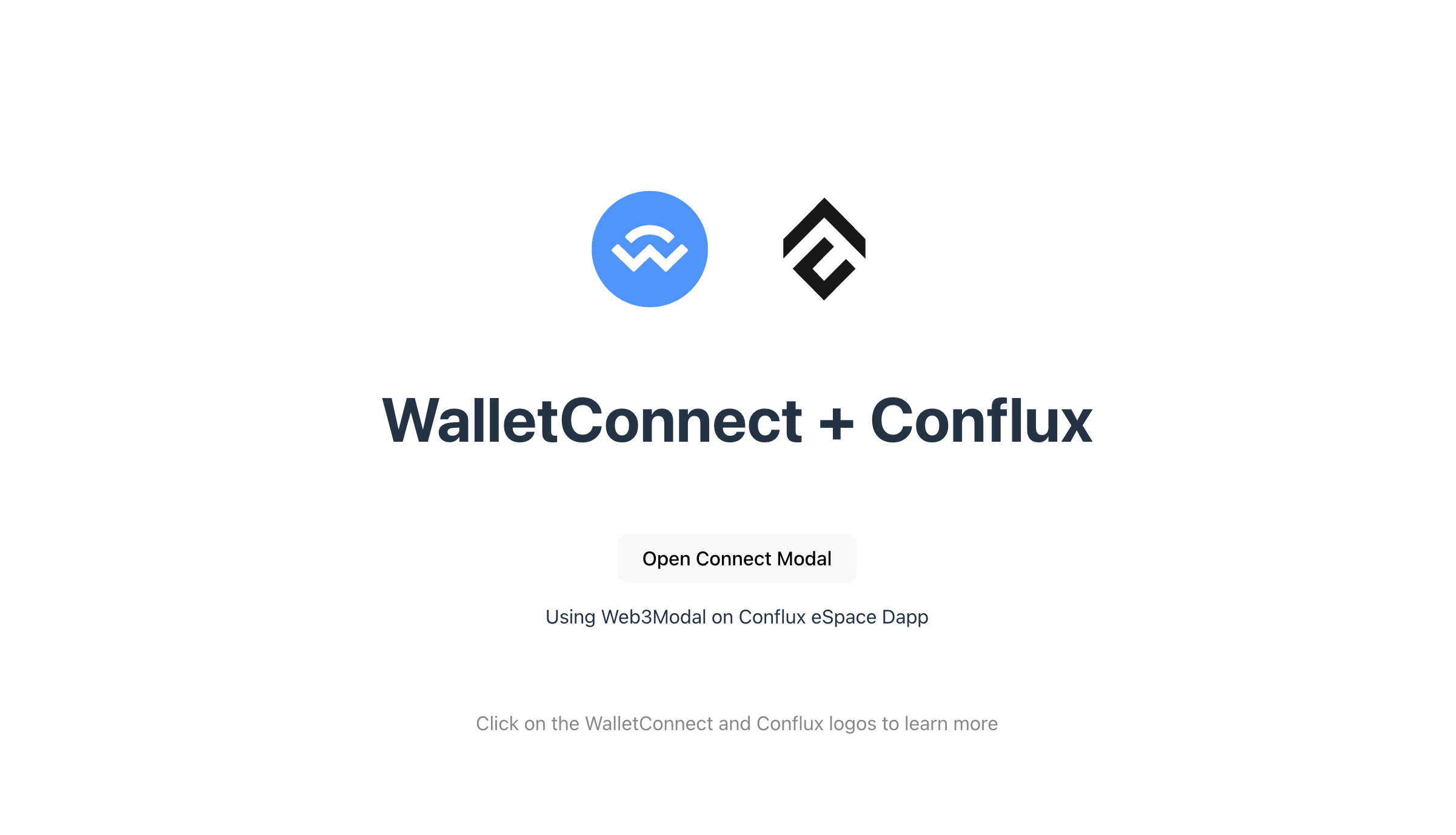 Click on the WalletConnect and Conflux logos to learn more